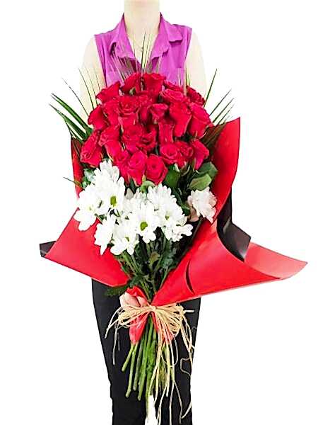 Kırmızı Güller ve Pembe Papatyalı Buket
